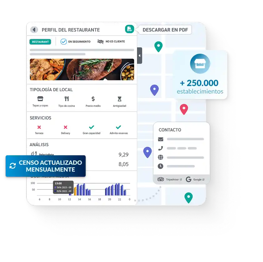 Delectatech ofrece el mayor censo vivo, completo y actualizado del sector foodservice en España. La primera plataforma basada en IA sencilla y accesible que permite a fabricantes y distribuidores tomar mejores decisiones de negocio, optimizar sus estrategias comerciales y de marketing, y resolver la falta de información y conocimiento del mercado.