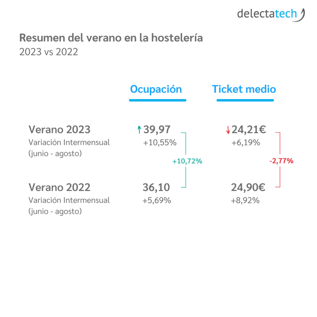 Compared to 2022, summer 2023 showed a variety of behaviors among establishments, with some experiencing double-digit growth in results, while others saw more modest increases. However, unlike the average ticket, occupancy in May 2023 remained similar to May 2022 levels before experiencing a notable increase during the summer season, even surpassing the previous year’s figures.