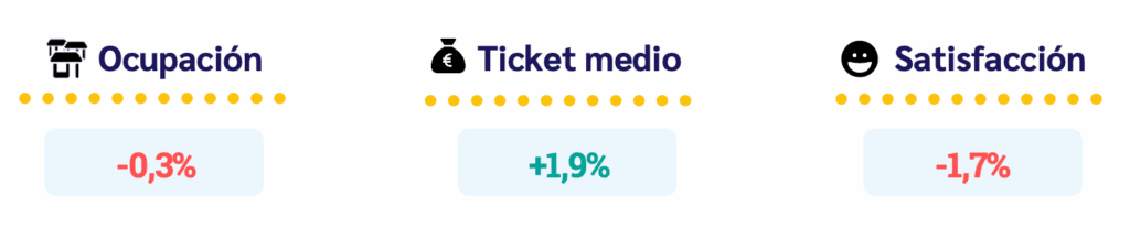 At Delectatech we have measured the year-on-year evolution of three key indicators for 2024 in the hospitality industry: establishment occupancy, average ticket per diner and customer satisfaction.