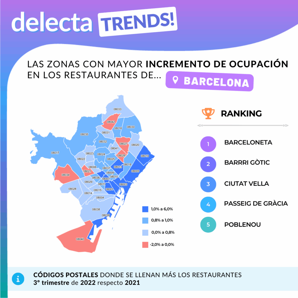 Analizando los datos, la conclusión es clara. Los barrios que más han crecido son zonas turísticas y ubicadas en el centro de la ciudad. Por su parte, los barrios que han reducido la ocupación se encuentran en lugares más residenciales. Esto se debe en gran medida al cese de las restricciones ocasionadas por la pandemia de Covid-19 y la mayor afluencia de turistas y ciudadanos de Barcelona a lugares de mayor actividad social. Por lógica, se espera una tendencia similar para años venideros.