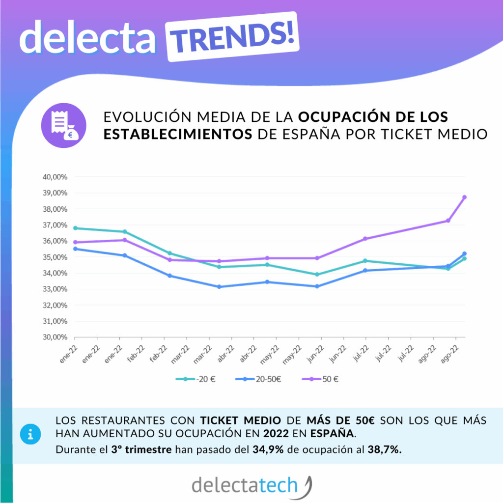 Si bien estamos ante un periodo de diversas dificultades económicas, tales como la inflación o la escasez de suministros, las tendencias en el consumo de restaurantes nos dan la idea contraria. Tanto es así, que los restaurantes con un precio medio de más de 50 euros por persona son los que más han aumentado su ocupación en el año 2022.