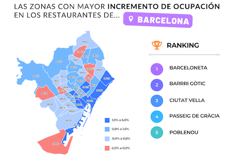 ¿Qué barrios de Barcelona gozan de mayor ocupación en sus restaurantes?